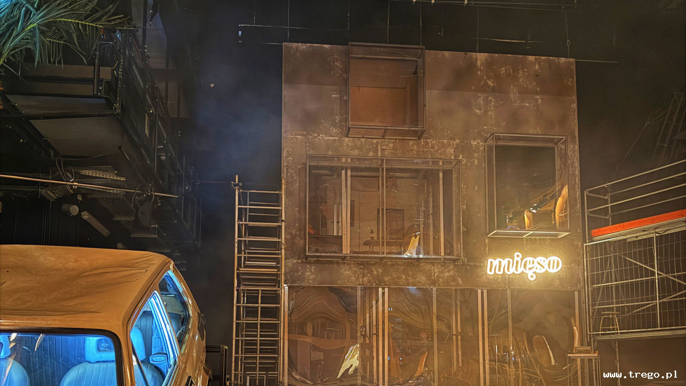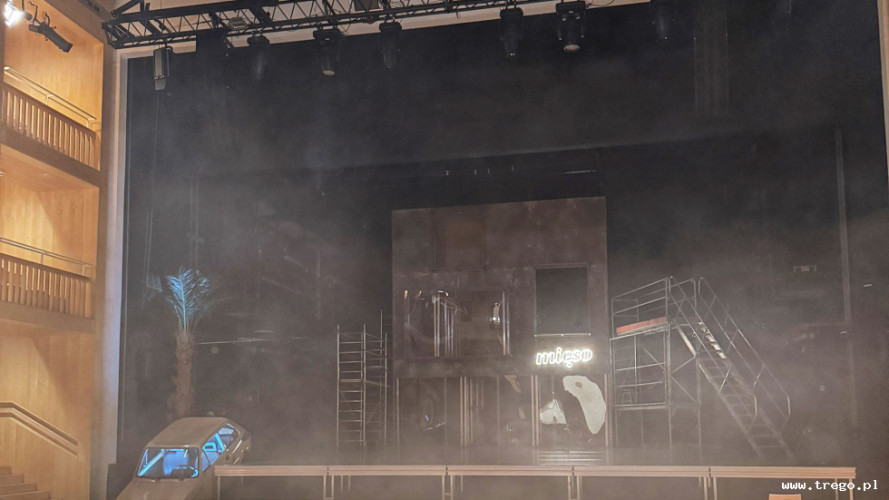 Scenografia w Teatrze Szekspirowskim jest wyjątkowo minimalistyczna, ale wykorzystana z niezwykłą pomysłowością. Ruchome elementy, światło i projekcje stają się integralną częścią dramaturgii, tworząc sugestywne obrazy epoki. Choreografia wyróżnia się dynamiką i precyzją – każdy krok współgra z rytmem muzyki, wzmacniając emocjonalny charakter scen. To właśnie dzięki temu spektakl nabiera takiego tempa i intensywności, że chwile ciszy stają się niemal namacalne.