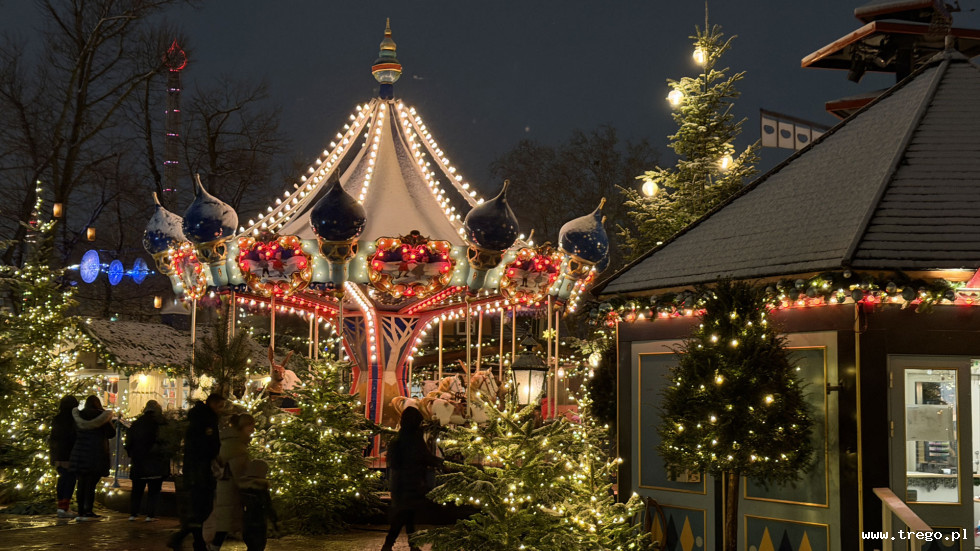 Jarmark świąteczny Tivoli – najpiękniejsza zimowa atrakcja Kopenhagi Tivoli Gardens to jeden z najstarszych parków rozrywki na świecie i jednocześnie jedno z najbardziej rozpoznawalnych miejsc w Kopenhadze. W okresie Adwentu park całkowicie zmienia swoje oblicze, stając się sercem świątecznego życia miasta. Jarmark świąteczny w Tivoli zachwyca nie tylko skalą, ale przede wszystkim dbałością o detale. Setki klimatycznych stoisk z rękodziełem, naturalnymi dekoracjami, świecami i ozdobami choinkowymi inspirowanymi skandynawskim designem tworzą wyjątkową przestrzeń do świątecznych zakupów. Całość dopełniają imponujące iluminacje – tysiące lampek, podświetlone fasady budynków, choinki i instalacje świetlne, które po zmroku zamieniają park w bajkową krainę. Spacer po Tivoli zimą to doświadczenie, które łączy tradycję, estetykę i magię świąt, przyciągając zarówno mieszkańców, jak i turystów z całego świata.