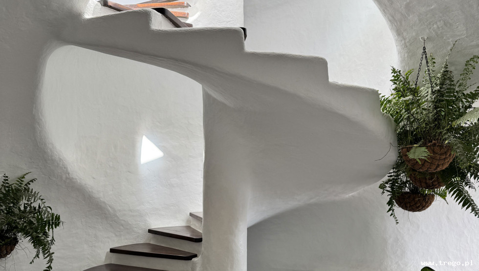 Spacer po domu to nie tylko zwiedzanie – to doświadczenie ciszy, światła i kształtów. Każdy zakątek zdaje się mówić o filozofii artysty: „Nie niszcz natury – współpracuj z nią”.