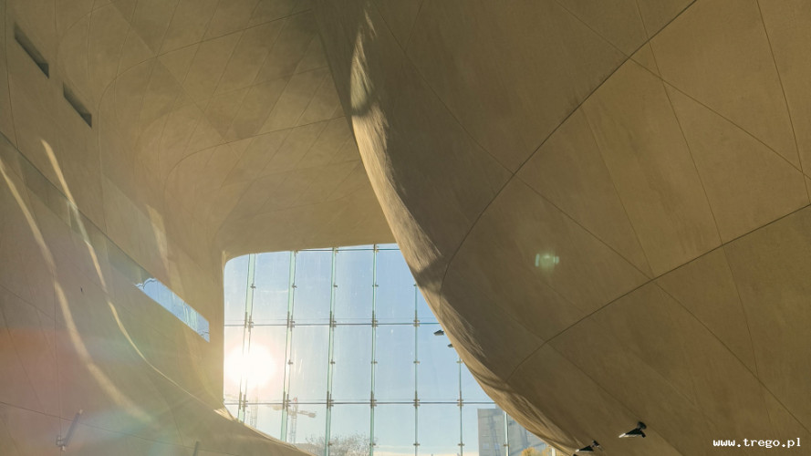 Gmach muzeum sam w sobie jest dziełem sztuki. Zaprojektowany przez fińskiego architekta Rainera Mahlamakiego, zachwyca symboliczną bryłą - z zewnątrz to zwykła bryła, ale środek jest jak bombonierka, której pofalowane wnętrze przypomina rozstępujące się wody Morza Czerwonego – znak przejścia, nadziei i przetrwania. Fasada z piaskowca nawiązuje do pustynnych krajobrazów, a ogromne przeszklenia symbolizują otwartość i dialog. Wnętrze muzeum to nie tylko ekspozycje – to doświadczenie. Osiem galerii prowadzi zwiedzających przez tysiąc lat historii, od legendarnych początków osadnictwa, przez złoty wiek Rzeczypospolitej, po czasy powojenne i współczesność. Każda sala to inny świat, inna emocja, inna opowieść o współistnieniu kultur.